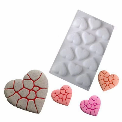 Силиконовая форма для создания порционных евро-десертов, муссов и шоколада. Оригинальный дизайн «каменное сердце», 15 ячеек.