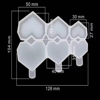 Форма силиконовая “Гранёные сердца”, 3 шт., разные размеры. 1шт