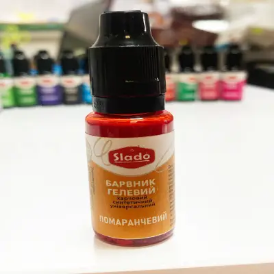 Гелевый пищевой краситель Slado Оранжевый — это качественный универсальный краситель, созданный специально для кондитеров. Позволяет получить яркий, оранжевый цвет в любых изделиях: кремах, мастике, айсинге, марципане, тесте, желе или напитках.