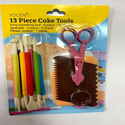 Кондитерский набор из 13 предметов — практичное решение для создания красивых и аккуратных тортов, капкейков и десертов. В комплект входят инструменты для моделирования мастики, шпатели, а также ножницы для формирования цветов. Все элементы изготовлены из качественного пластика, удобно лежат в руке и легко очищаются после использования.