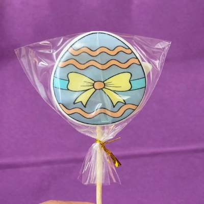 Купить леденец яйцо 6 см с рисунком. Сладкий пасхальный подарок для детей и декора. Яркий и вкусный леденец на палочке.