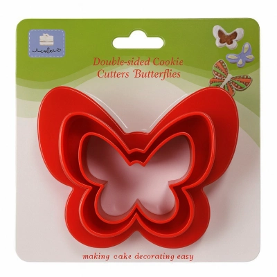 Набор двойных вырубок для печенья и пряников в форме бабочки. Формы изготовлены из прочного пищевого пластика и подходят для работы с тестом, мастикой и другими кондитерскими материалами.