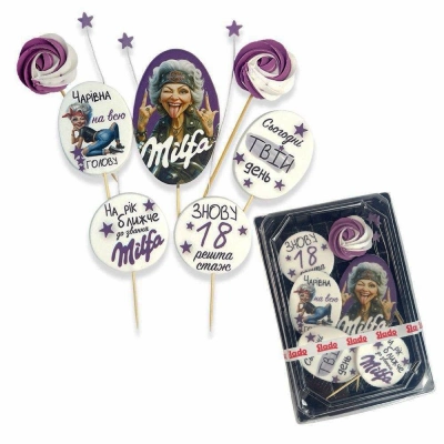 Набор кондитерских украшений «Милфа ТОП» — это стильное и эффектное решение для украшения тортов, капкейков и десертов. В состав набора входит 10 элементов, выполненных в едином тематическом дизайне с декоративными надписями и изображениями.