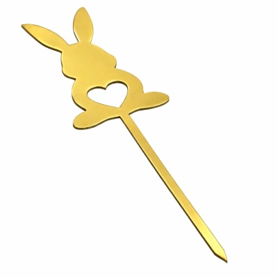 Пасхальный топпер из полистирола в виде золотого зайчика с сердечком — нежное и стильное украшение для вашей выпечки