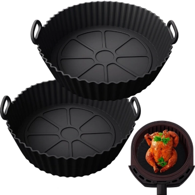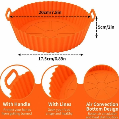 Силиконовая форма-вкладка для аэрогрилей и аэрофритюрниц — удобное и универсальное решение для приготовления различных блюд. Диаметр формы 17,5 см, высота — 5 см, есть удобные ручки для безопасного извлечения из духовки или фритюрницы.