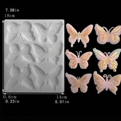 Силиконовый молд «Бабочки» — удобная форма для лепки аккуратных и детализированных декоративных элементов. Подходит для работы с мастикой, шоколадом, изомальтом, полимерной глиной и другими материалами. Молд имеет 6 разных ячеек с красивыми формами крыльев. Размер всей формы — 7×14 см, глубина — 0,6 см. Изготовлен из прочного пищевого силикона, легко моется и выдерживает низкие и высокие температуры.
