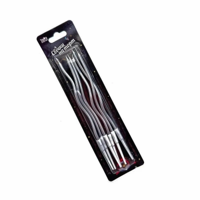 Набор праздничных коктейльных свечей хром серебряного цвета — универсальное и стильное украшение для любого торта. Металлический блеск придаёт десерту изысканный вид и подчёркивает атмосферу торжества. Свечи имеют изящную форму, горят ровно и не коптят. Отлично подходят для дней рождений, юбилеев и свадеб. Длина каждой свечи — 13 см. В упаковке 6 штук.