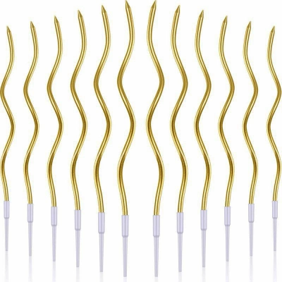 Набор золотых волнистых свечей для торта. Длина — 15 см, упаковка — 12 штук.