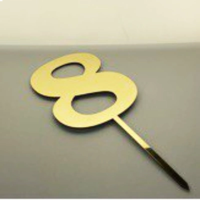 Золотой топпер в форме цифры 8 — изысканное украшение для праздничных тортов и десертов. Выполнен из качественного полистирола с зеркальным золотым покрытием, которое придаёт блеск и нарядный вид. Устойчив к влаге и легко вставляется в основу торта. Высота самой цифры — 7 см, идеально подходит для оформления дней рождения и юбилеев.