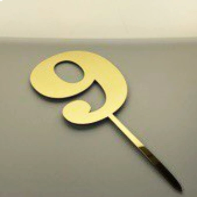 Золотой топпер в форме цифры 9 — стильное украшение для тортов и десертов. Изготовлен из качественного полистирола, обладает глянцевым зеркальным блеском и устойчив к влаге. Отлично подходит для оформления праздников, дней рождения и юбилеев. Высота самой цифры — 7 см, что делает её заметной и элегантной деталью декора.