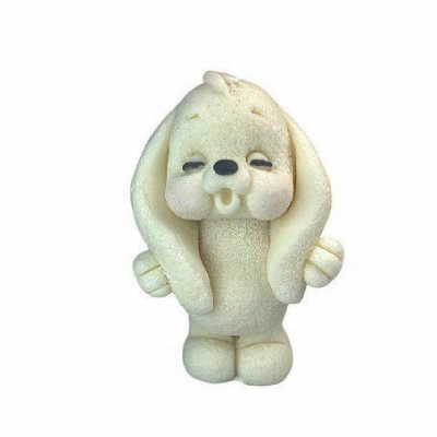Фигурка выполнена с высокой детализацией: зайчик с длинными ушками стоит с закрытыми глазками и словно выдувает свечку, создавая трогательную атмосферу праздника.