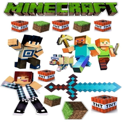 Вафельная картинка «Майнкрафт» выполнена на листке формата А4 из тонкой съедобной вафельной бумаги. На картинке — герои и блоки из популярной игры Minecraft, выполненные в ярких цветах. Картинка идеально подходит для украшения детских тортов, десертов, капкейков и праздничных изделий. Безопасная для использования, легко вырезается и наносится на крем или мастику. Идеальное решение для оформления торта в день рождения фаната Minecraft!