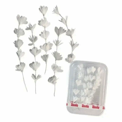Вафельный декор «Веточка сакуры белая» — элегантное и лёгкое украшение для оформления тортов, капкейков и десертов. В наборе 5 штук.
