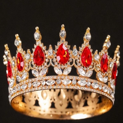 Декор для торта «Корона» с красными камнями — стильное и выразительное украшение, выполненное в золотом цвете и инкрустированное крупными кристаллами насыщенного алого оттенка. Диаметр изделия — 12 см.